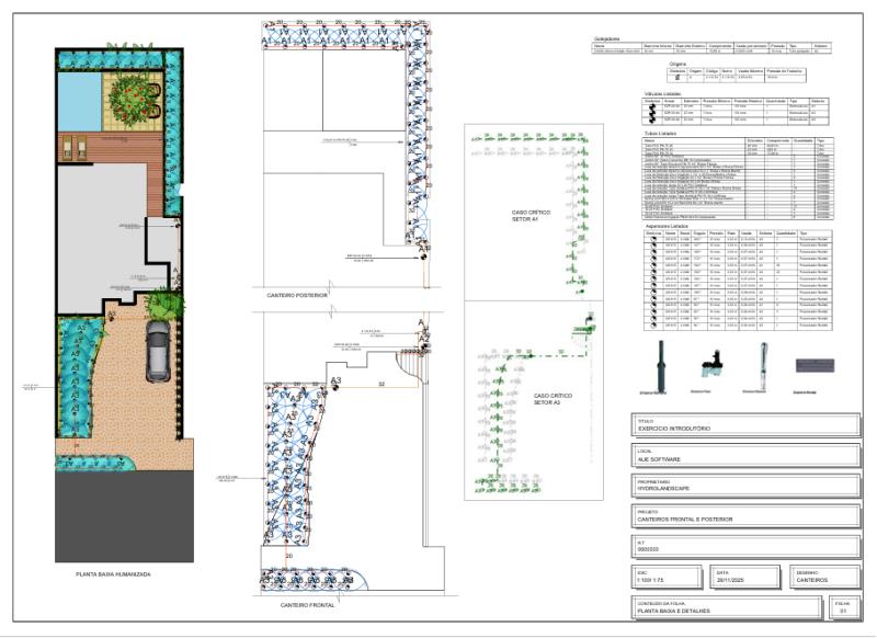 Creación, apertura, guardado y exportación de archivos de proyecto;Navegación por la interfaz de HydroLANDSCAPE y aprendizaje de sus herramientas principales;Inserción y configuración precisa de aspersores, válvulas, tuberías y conexiones;Dimensionamiento automático del sistema de riego, generación de informes completos y notas de cálculo;Organización de leyendas y detalles técnicos para una presentación profesional del proyecto;Exportación eficiente de resultados y preparación del material ejecutivo.