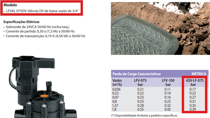 En la tabla de pérdida de carga, este modelo no aparece listado exactamente con la misma nomenclatura. Por lo tanto, los valores de pérdida de carga registrados para él se basaron en el modelo descrito en esta tabla como ASV-LF-075.