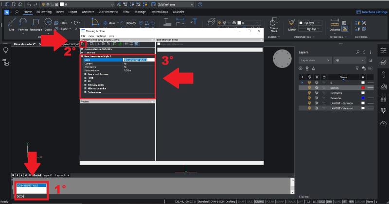 En primer lugar, crearemos una capa (Layer) para las cotas. Esto mantiene el dibujo organizado y facilita el control de la visibilidad y la impresión de las medidas.