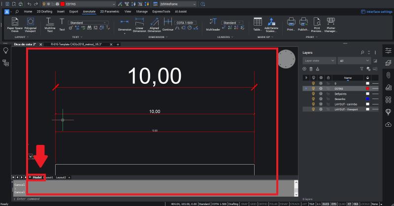Active esta capa para que todas las cotas creadas se coloquen automáticamente en ella.