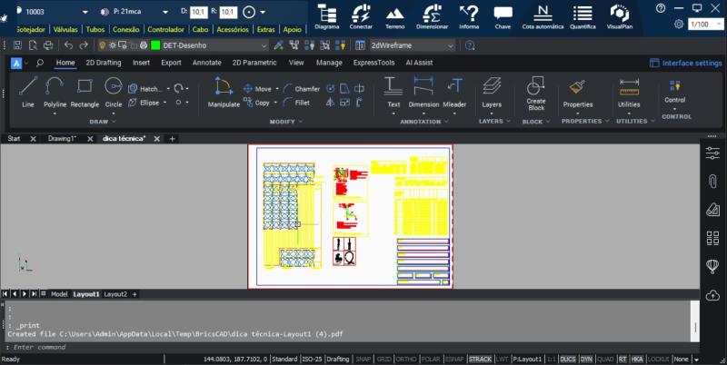 Para finalizar, pulse Ctrl + P para abrir la ventana de configuración de impresión.Ajuste los parámetros según sea necesario.Genere el PDF de la plancha técnica.