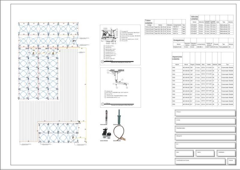 Elija el elemento deseado, haga clic en la pestaña Fotos, seleccione la imagen e insértela en el lugar deseado del proyecto.En el ejemplo, he insertado cuatro imágenes junto al plano de planta: un aspersor, una válvula, una bomba y un gotero.