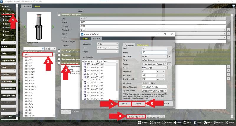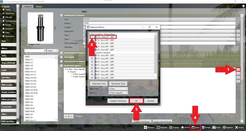 HydroMANAGER 2022: Cómo añadir la tobera registrada a la lista de aspersores