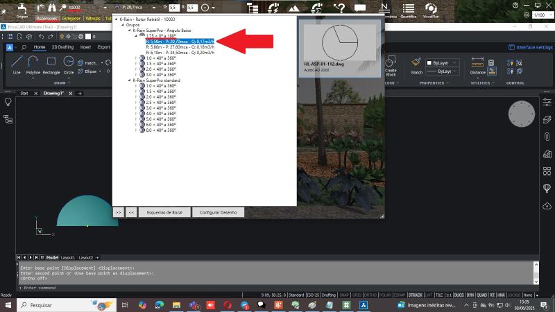 Su boquilla estará ahora disponible en la lista de opciones de aspersores durante el dimensionamiento del proyecto.