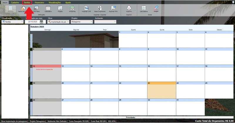 Pero antes de entrar en el tema de hoy, es importante recordar que, para que el botón Tareas funcione correctamente, los demás pasos del proyecto ya deben estar creados. Organice todas las etapas previamente y configure los elementos necesarios. De esta forma, al gestionar las tareas, todo tendrá sentido, evitando el trabajo repetido y garantizando que su equipo trabaje de forma más eficiente y productiva. Con LandMANAGER abierto, vamos a hacer clic en la pestaña Tareas.