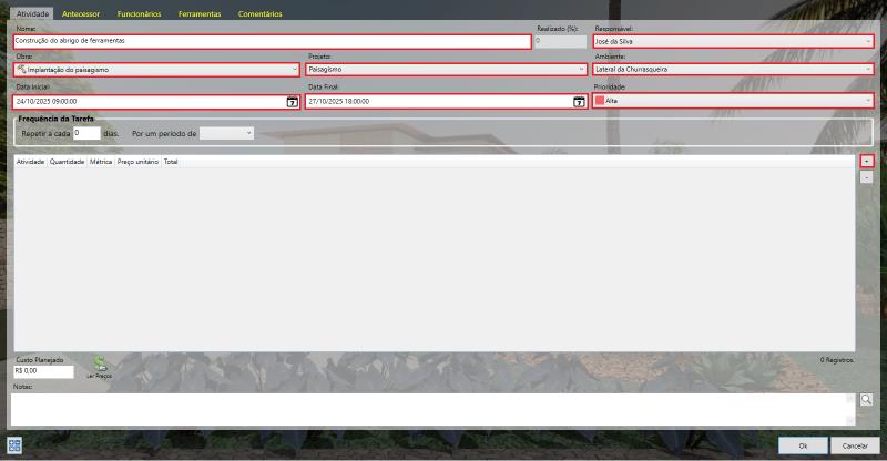 El botón Añadir es el punto de partida para registrar nuevas actividades. Al hacer clic en él, podrá definir: