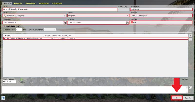 El nombre de la tarea;El responsable de la ejecución;La obra en la que se realizará esta tarea;El proyecto utilizado como base;La prioridad de esta tarea;Las fechas de inicio y finalización;