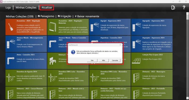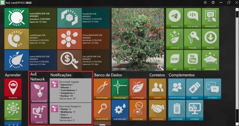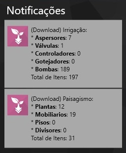 En la sección Notificaciones, el sistema informa qué ítems de paisajismo y riego todavía necesitan ser descargados. Siempre que haya una nueva colección disponible, ella será señalizada en esa área.